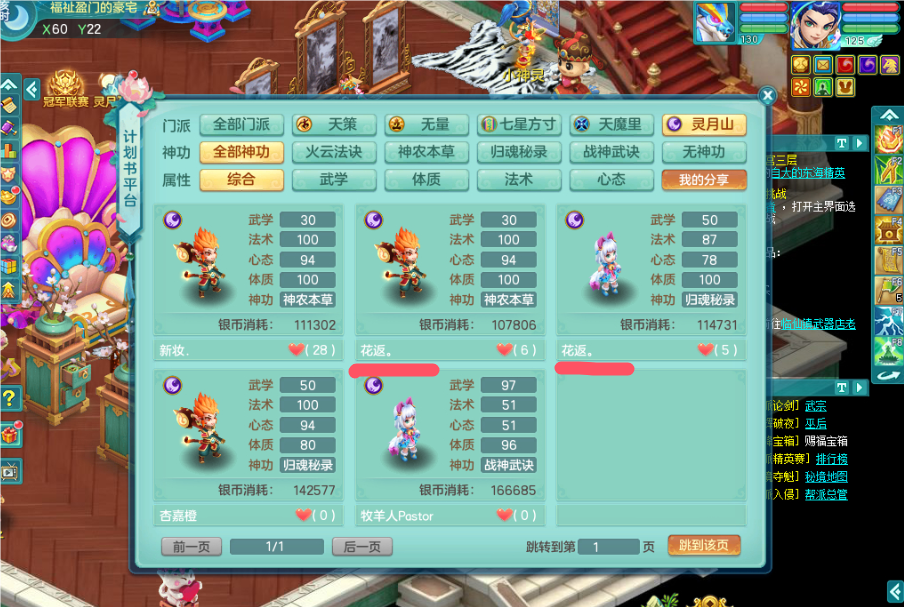 《幻唐志》来自大佬玩家“花返”的新门派灵月山计划书,已制作完成,分为黄帝和还魂两版,不学复苏的灵月山孩子可以选择还魂版的,系统里也有同步上传,作者ID花返。在管家-子女养育计划-寻找子女计划那里可以找得到,如下图所示: 黄帝灵月山倒计时: 30天当天计划:急就章[+2心],急就章[+2心],急就章[+2心],急就章[+2心]当天属性:武学0、法术0、心态8、体质0、温饱度100 ------------------------------------------------------------------------- 倒计时:29天当天计划:急就章[+2心],丹桂花糕[+5体]当天属性:武学2、法术2、心态12、体质7、温饱度100 ------------------------------------------------------------------------- 倒计时:28天当天计划:丹桂花糕[+4体]当天属性:武学4、法术4、心态14、体质13、温饱度100 ------------------------------------------------------------------------- 倒计时:27天当天计划:丹桂花糕[+4体]当天属性:武学6、法术6、心态16、体质19、温饱度100 ------------------------------------------------------------------------- 倒计时:26天当天计划:糖葫芦[+2体],糖葫芦[+2体],糖葫芦[+2体]当天属性:武学8、法术8、心态18、体质27、温饱度100 ------------------------------------------------------------------------- 倒计时:25天当天计划:糖葫芦[+2体],玉灵果[+3体],玉灵果[+3体]当天属性:武学10、法术10、心态20、体质37、温饱度100 ------------------------------------------------------------------------- 倒计时:24天当天计划:玉灵果[+3体],山海经[+3法],启蒙棋谱[+2法],山海经[+3法],玉灵果[+2体]当天属性:武学12、法术20、心态22、体质44、温饱度100 ------------------------------------------------------------------------- 倒计时:23天当天计划:玉灵果[+2体],玉灵果[+2体],山海经[+2法],启蒙棋谱[+1法],山海经[+2法]当天属性:武学14、法术27、心态24、体质50、温饱度100 ------------------------------------------------------------------------- 倒计时:22天当天计划:山海经[+2法],列异传[+1法],玉灵果[+1体],玉灵果[+1体]当天属性:武学16、法术32、心态26、体质54、温饱度100 ------------------------------------------------------------------------- 倒计时:21天当天计划:列异传[+1法],列异传[+1法],玉灵果[+1体],玉灵果[+1体]当天属性:武学18、法术36、心态28、体质58、温饱度100 ------------------------------------------------------------------------- 倒计时:20天当天计划:百兽图谱[+1法],百兽图谱[+1法],拜入“灵月山”,修业[+1法,+1心]当天属性:武学20、法术41、心态31、体质60、温饱度100 ------------------------------------------------------------------------- 倒计时:19天当天计划:修业[+1法,+1心]当天属性:武学22、法术44、心态34、体质62、温饱度100 ------------------------------------------------------------------------- 倒计时:18天当天计划:修业[+1法,+1心]当天属性:武学24、法术47、心态37、体质64、温饱度100 ------------------------------------------------------------------------- 倒计时:17天当天计划:修业[+1法,+1心]当天属性:武学26、法术50、心态40、体质66、温饱度100 ------------------------------------------------------------------------- 倒计时:16天当天计划:修业[+1法,+1心]当天属性:武学28、法术53、心态43、体质68、温饱度100 ------------------------------------------------------------------------- 倒计时:15天当天计划:修业[+1法,+1心]当天属性:武学30、法术56、心态46、体质70、温饱度100 ------------------------------------------------------------------------- 倒计时:14天当天计划:修业[+1法,+1心]当天属性:武学32、法术59、心态49、体质72、温饱度100 ------------------------------------------------------------------------- 倒计时:13天当天计划:修业[+1法,+1心]当天属性:武学34、法术62、心态52、体质74、温饱度100 ------------------------------------------------------------------------- 倒计时:12天当天计划:修业[+1法,+1心]当天属性:武学36、法术65、心态55、体质76、温饱度100 ------------------------------------------------------------------------- 倒计时:11天当天计划:修业[+1法,+1心]当天属性:武学38、法术68、心态58、体质78、温饱度100 ------------------------------------------------------------------------- 倒计时:10天当天计划:修业[+1法,+1心]当天属性:武学40、法术71、心态61、体质80、温饱度100 ------------------------------------------------------------------------- 倒计时:9天当天计划:道德经[+1心],道德经[+1心],修业[+1法,+1心]当天属性:武学42、法术74、心态66、体质82、温饱度100 ------------------------------------------------------------------------- 倒计时:8天当天计划:道德经[+1心],学习“神农本草”,修业[+1法,+1心]当天属性:武学14、法术77、心态70、体质84、温饱度100 ------------------------------------------------------------------------- 倒计时:7天当天计划:修业[+1法,+1心]当天属性:武学16、法术80、心态73、体质86、温饱度100 ------------------------------------------------------------------------- 倒计时:6天当天计划:修业[+1法,+1心]当天属性:武学18、法术83、心态76、体质88、温饱度100 ------------------------------------------------------------------------- 倒计时:5天当天计划:修业[+1法,+1心]当天属性:武学20、法术86、心态79、体质90、温饱度100 ------------------------------------------------------------------------- 倒计时:4天当天计划:修业[+1法,+1心]当天属性:武学22、法术89、心态82、体质92、温饱度100 ------------------------------------------------------------------------- 倒计时:3天当天计划:修业[+1法,+1