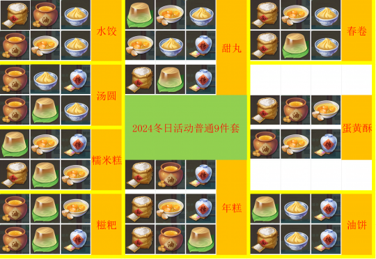 《幻唐志》2024新版冬日食材配方,冬日活动普通9件套(文字附后三珍稀配方)
