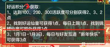 给好友发 新年快乐 这四个字,然后会弹出来一个红色的勾勾,点击就可以有三点积分了。