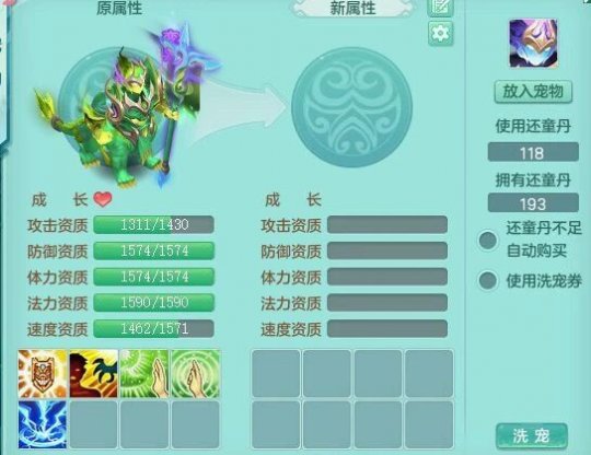 《幻唐志》宠物牛图展示,最近又看到了一些很有意思的宠物宝宝打造,如果是你,法宠资质与成长该如何选择呢? 投稿人: 逝去de过往、刈“开放第一天就出了2只,如果是你,你会选哪个?” 一边是1750法资绿心,一边是1590法资红心,两只九幽魔将的资质各有特点,各位少侠更倾向培养哪一只呢? 投稿人: 喵萌萌 预热一直没抓到,第一天就出了。”慕子白这只飞羽红心六技能的同时,还有1575攻资和1573速资!而剑气+高必的护符与攻资速资能形成有效搭配!预热虽没抓到,但好事不怕晚! 投稿人: 玉玲珑 虽然不完美,但是给大家做下参考应该问题不大!1699速资+五技能,再加上双神佑的突破天赋配合高级神佑+勇敢的护符,为赤炎童子提供了养成思路,感谢少侠的分享! |