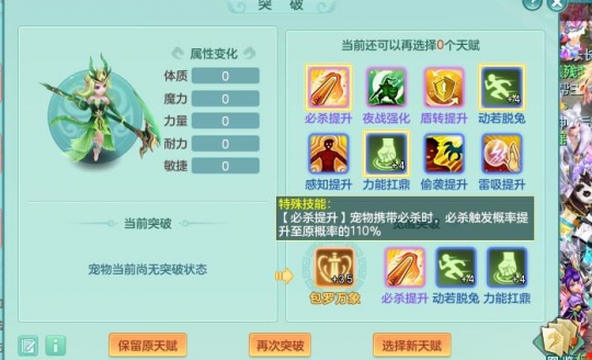 玛卡巴卡 真是一次就觉醒了 必杀偷袭感知都不选,这是个狠人啊,必杀夜战偷袭,晚上宠,蓝的强化基本上等于没有,跟属性差别不大。 |