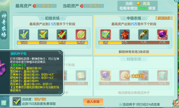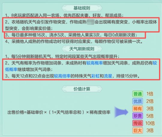 幻唐志宝宝版神奇农场攻略!保姆级神奇农场教学,神奇农场是最近上线的全新玩法,有些玩家还不太了解怎么玩,下面我们详细讲解一下。 【名词解释】 种子即宝宝,基础单价即携带等级。稀有度词条即成长率(绿~蓝~橙~紫~红心),巨大词条即满技能。 芒果是用来拼收益上限的,高贵的最终伤害,提高2~4倍率。 【名词解释】 天气词条即资质上限,特殊词条无法避免不用管,生机即灵能果。 【名词解释】 12点/22点即攻击速度稀有元宵。 【结论】 提高神奇币倍率如同洗宝宝,红心满技能满资质龙姬 自然好过于 蓝心龙女。 其中红心满技能在成熟时便已决定,满资质则只需要挂时间便能吃满。 【操作】 因此,在12点(或22点)种下西红柿,等5~10分钟查看其成长和技能。若为蓝心绿心则即刻(或等下一个点)铲掉,若为橙心以上则挂24~36小时补资质上限,若为红心满技能则挂到满资质为止。略微调整以最大化收益,然而更多取决于红心满技能的欧皇运气。 【问答】 什么是多茬种子? 答:多给洗宝宝次数。 蓝心绿心满技能宝宝能不能用? 答:等同于橙心或紫心也能用。 一天能洗几次宝宝? 答:最多16次,多茬种子可更高。 还有别的方法获得红心满技能宝宝吗? 答:偷别人的,每天可3次。 灵能果怎么获取? 答:种下时即刻邀请好友过来,每人每天5次。 为何要在12点/22点种? 答:更高概率获得攻击速度稀有元宵。 什么种子算龙姬镜花灵? 答:西红柿/雪梨/芒果。 如何获得稀有种子?答:活跃度150时赠送;或者每天商店4次刷新几率出现。 能不能只追红心满技能?答:洗宝宝次数有限,而格子无限也,见好就收。 西红柿致富【此贴完结】 12个天气+传说+巨大就是满词条了。特殊词条不计算在内,所以成熟前没有传说巨大,说明他不是红心满技能。 |