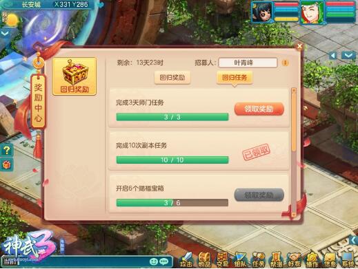 9月28日,《神武3》2018下半年全新内容“星罗万象”即将上线,老玩家回归老服和新服都将享受丰厚的回流奖励。在活动期间,回流玩家首次登录《神武3》即可获得回归礼包,还可获得“回归奖励”活跃礼盒,累计活跃度就能解锁多重回归奖励!除此之外,还有回归标志、多重特权福利、全新回归任务和招募送好礼等福利!故友重逢,再次并肩闯荡,一同谱写新的传奇! 【呼朋唤友荣归三界】 回归老服 重出江湖 玩家回归老服,登录就送回归礼包。从9月21日到10月25日活动期间,达到参与条件(2018年9月6日后未登录过游戏,等级≥60级且官职达到九品的角色)的回流玩家首次登陆《神武3》即可获得丰厚的回归礼包,不仅有化龙鼎、头像券等珍贵奖励,还提供超强卦象的四象神符、蕴含海量储备修炼或者威望的炼神瓶、博古典籍等全新实用道具,助你重返巅峰! 活动期间,老回家回归可获得回归标志,回归玩家组队做副本、封妖、捉鬼等活动时,所在队伍全队可获得5%的经验和信誉加成。根据回归玩家的帮贡,玩家所在帮派还有概率获得培育礼盒等好礼!除此之外,回流玩家还可获得“回归奖励”活跃礼盒,达到一定活跃度就可以解锁相应的奖励。尊享多重特权福利,与新朋好友一起闯荡江湖! 【活跃礼盒】 做回归任务,赢多重好礼。活动期间,回流玩家完成回归任务,如做师门、在许愿树前许愿等活动,就有机会获得四级护符重置丹、神兽之灵等好礼!还有全新内容“星罗万象”的相关引导任务,带你快速了解更新内容,重返巅峰! 【回归任务】 玩家招募具备活动参与资格的昔日好友,好友重新登录游戏并达到一定活跃度后,招募人便可获得丰厚的回归奖励。与招募回归的昔日好友一同完成招募任务,还能额外获得山水玄机图等多重奖励! 【招募好礼】 回归新服 全新旅途 从9月28日到10月25日,在活动期间开启的新服创建角色可享回归福利,满足回流条件(账号下有≥60级,角色离线时间在9月6日前,且离线时间>15天)可获得回归奖励,还童丹、修炼丹等实用道具助你征战新服,快人一步! 活动期间,已激活回归的新服玩家可获得“回归奖励”活跃礼盒,达成一定活跃度时即可获得对应阶段奖励。礼盒中包含帮派红包、头像券、紫灵玉等丰厚奖励。除此之外,已激活回归的新服玩家可获得三种福利状态,“互惠互利”状态下首次充值更划算,“一帮之主”享8折建帮费用优惠,“风水宝地”提升房屋风水等级,助你轻松建造家园! 《神武3》新内容新福利,玩家回归三界享好礼!玩家回归老服,重出江湖,参与回归活动,重回昔日巅峰;玩家回归新服,全新旅途,参与回归活动,升级快人一步!更多精彩欢迎登陆《神武3》进行体验,全新内容等你再续前缘! |