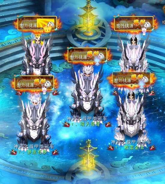 黄沙百战,名动天下!《神武3》第73届神武之战的决赛双方分别是世外桃源A队和缘定三生A队。作为一只刚刚斩获排位赛全明星冠军的团队,世外桃源A队在甲组中可谓势如破竹,先后击败了扬名立万A队、龙战于野A队等老牌强队,成功晋级到决赛当中,最终在经过46回合的激烈角逐后,世外桃源A队成功击败对手,时隔8个月,再次斩获冠军。下面为大家带来世外桃源A队的专访。 恭喜世外桃源A队精彩夺冠,期待他们下一届给我们带来更多惊喜,接下来为大家展示他们的队伍大合照,以及部分宠物和装备。 本次神武之战是全新内容“星罗万象”开启后的首届服战,在比赛中,我们看到了不少如TM、PS等门派在比赛中的回归,也见证了MW的再度崛起。未来,选手们又将开发出多少丰富而新奇的战术呢,让我们拭目以待! |