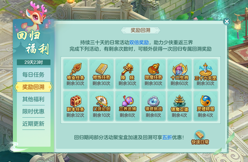 本周更新提纲 1. “526爱牛节”系列活动上线 2.英豪令新赛季 3.巅峰联赛火热进行中 4. 老服回归福利加码 5.其它内容调整 【“526爱牛节”系列活动上线】 迎福牛,逍遥游!“526爱牛节”即将到来,多益吉祥物“牛益福”也将如约而至,本次将开启以下活动: 神秘残片 5月23日维护后至6月5日,每天达到200活跃可通过幸运转转乐获得器物碎片;将其交给牛益福即可获得奖励,累计提交一定数量的残片还可获得随机高级魔兽要诀奖励! 碎片上似乎还记载了一些信息,不知道有什么含义,少侠们不妨去探索一番~ 聚宝行运 5月26日至6月8日,每日活跃可获得喜气,喜气可用于活动悬赏。6月2日后,还可使用喜气回溯多种玩法奖励或兑换喜气礼盒。 分享有礼 5月23日维护后至6月5日,邀请好友一起参与福牛送福网页活动,累计福气积分即可领取丰富好礼。 爱牛节期间还有迎福赠礼、集字有礼等精彩活动,丰富福利等你来领~ 【英豪令新赛季】 (1)维护后英豪令将开启新赛季; (2)85级以上的服务器,本赛季英豪令将提供养成奖励及打造奖励两种不同的进阶方式,购买进阶后不可重置。奖励内容仅进阶奖励不同,基础奖励一致; (3)养成奖励包含洗宠强化符、自选礼盒(幻彩花、符石碎片包×4、洗炼石×45)、糯米凉糕等养成道具; (4)打造奖励包含26个域外寒晶,还有稀有道具神工符、铸器符。 少侠们可以根据自身情况选择更适合自己的进阶奖励! 【巅峰联赛火热进行中】 巅峰联赛海选赛历经4周终于圆满落幕,5个等级段共计400支队伍将踏上新的征程: (1)本周五将进行巅峰联赛突围赛,周六、周日将分别进行巅峰联赛分组赛和淘汰赛; (2)由于赛程和三界比武大会玩法冲突,晋级淘汰赛第三轮的队伍将会获得一定的比武积分补偿。 比赛开始时,少侠可前往长安城(94,180)监军使处观看赛事直播,官方助手登录的少侠也可直接通过观战大厅观看直播! 【老服回归福利加码】 老服回归享加码 (1)回归期间,英豪令每升一级可获得双倍英豪积分; (2)回归期间首次购买招财礼券,首月每日可额外获得50%礼券积分; (3)离开三界更长时间的少侠在重回三界时将开启为期30天的回归活动,30天内完成大部分日常玩法均可免费获得双倍奖励。 老服新号享助力 (1)在服务器≥85级的服务器创建角色时,可在金币商城中购买助力礼包,开启后除了能获得神技装备、变异宠物,本次维护后还将额外获得一定等级的宝石、修炼和官职,并且可以快速跳过0-50级的剧情; (2)在服务器>100级的服务器创建角色时,若为账号下首个角色,将获得30天叶子标签; (3)在服务器>125级的服务器创建角色时,将开启幻唐新秀活动,累计升级积分可加速养成追赶。 【其它内容调整】 限时玩法调整 (1)守卫三界活动中,提高了击败九黎妖怪获得的奖励; (2)人物排位赛活动中单/双排匹配模式下,支持匹配对手后由队长选择战斗准备完毕。 师徒系统调整 (1)维护后,将通过徒弟的角色评分、宠物评分、子女评分维度,判断徒弟能否出师; (2)徒弟出师奖励增加随机高级魔兽要诀。 子女养育加速 服务器等级≥105级时,养育子女过天可使用的道具数量上限增加,神农果每天可使用数量增加至4个,逍遥果和神农果每天可使用最大数量提升至8个。子女可以更快成年,早日成为少侠的得力帮手~ 其它内容调整 (1)支持了战斗内合成变异变身卡; (2)化龙鼎龙脉分页支持调整位置。 *以上是慕子白带来的最新资讯* *最终效果可能会有所调整* |
