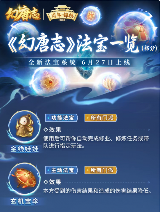 《幻唐志》全新法宝系统即将推出,活跃轻松养成,战斗体验全新加成,更有第一批法宝信息爆料!寒渊城外,造化万象,新地图“域外霜原”将于6月20日上线! 部分法宝效果抢先看 全新法宝系统即将正式上线,活跃升级快速养成,为少侠们带来更加有趣、丰富的游戏体验!此外,少侠们可以通过指定日常或限时活动获取材料合成法宝,现已开放第一批可获取法宝名单,更多法宝增益效果可前往游戏进行体验! 值得注意的是,少侠现在上线体验法宝手册活动,完成对应任务也可提前体验法宝效果! 新地图“域外霜原” 细节速览 白雪皑皑,风吹古道,域外霜原本是寒渊外的一处茫茫旷野,但如此幽山静水之地却因为邪魔不断从寒渊涌出而危机遍地,在玄翎率部建立寒渊城后,为了确保城中百姓的安全,寒渊城将士在霜原营造了大量的工事以应对邪魔灾难。 寒渊城将士以城化盾庇护三界,来自不同种族不同势力的人也陆续加入到这一项伟大的事业中。其中更有不少英雄在与邪魔的战斗中陨落,长眠于此。 战场一角,古老的刀剑掩埋在无尽风雪之下,寒风掠过参差剑柄时,总在霜刃之间撞出断续的呜咽,仿佛诉说着当年战争的惨烈与悲壮。 域外霜原中心最近突现异象,有卫兵巡逻之时,隐约看到有神秘的光芒流转,熠熠生辉。新地图“域外霜原”将于6月20日开启,为少侠们带来更加轻松、丰富的游戏体验! |