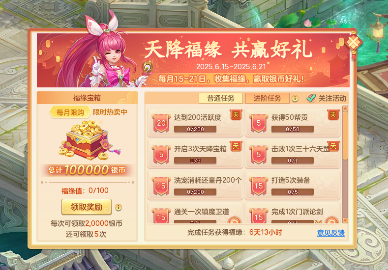 《幻唐志》本周维护更新爆料,新一批法宝解锁体验,10万银币福缘开启,一起来看看具体更新内容吧! 本周更新提纲 1. 法宝现世系列活动进行中 2. 子女赠礼、天降福缘活动上线 3. 周年大服“周年·锦绣”即将开启预创建 4.其它内容调整 【法宝现世系列活动进行中】 法宝现世,风云变幻!法宝现世系列活动火热进行中: 法影迷踪 维护后至6月19日24点,每天9-23点会在野外出现嗜法的妖物,似乎在寻找什么,为首的妖怪好像还掌握了一些特殊的能力,还请众位少侠去一探究竟。击败妖物可获得奖励,还有概率获得法宝碎片和法灵尘! 法宝手册 本周维护后通过日常活跃、参与新上线的法影迷踪活动,少侠们可以获得更多法宝碎片、法灵尘,收集更多法宝并佩戴体验! 【子女赠礼、天降福缘活动上线】 子女赠礼 (1)6月15日拥有子女的少侠在登录游戏时将获得子女感恩礼盒,开启礼盒可获得道具奖励; (2)维护后至6月19日前,奇遇任务“微弱的嘉许”触发概率有所提高。 天降福缘 本月的“天降福缘”活动将于6月15日如期而至。少侠参与活动并完成福缘任务,不仅可以赢取10万银币好礼,还能邂逅各种奇缘人士。完成三界奇缘事件,获取丰富奖励。 【周年大服“周年·锦绣”即将开启预创建】 周年大服“周年·锦绣”6月27日上线,6月16日10点将开放角色预创建。全新特殊技能萌宠将在本服亮相,并与少侠们结伴同行。还有更适合新服少侠的法宝系统上线!大量福利活动,全新新服玩法等你来体验! 6月16日官网还将开启新服预约活动,预约数满足一定要求后所有新服少侠均可领取奖励~ 【其它内容调整】 官方助手 支持了排行榜功能 回归相关 (1)短信招募活动:维护后至7月14日,维护前服务器等级≥85级且人物等级≥90级的少侠可参与。招募离线好友回归,招募成功和组队日常均可获得奖励,详情可前往游戏内了解; (2)好友推荐活动:新增道具“小流光囊”,售价450邀请积分,开启后可存放5个限时物品,可和“流光囊”叠加使用。 师徒系统调整 放宽了拜师条件,新建角色≤14天的少侠,在拜师时可以无视等级限制。 *以上是慕子白带来的最新资讯* *最终效果可能会有所调整* |