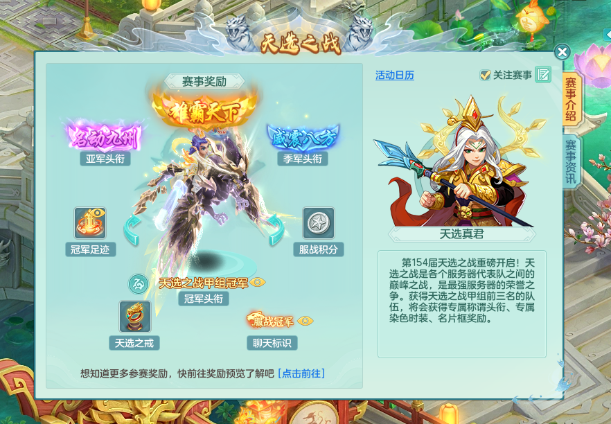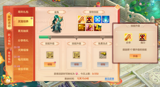 《幻唐志》本周维护更新内容,满技能变异宠免费培养活动开启,第154届天选之战开赛! 【本周更新提纲】 1. 灵宠培养活动开启 2. 畅玩一夏活动火热进行中 3. 第154届天选之战开赛 4. 巅峰联赛火热进行中 其它内容调整 【灵宠培养活动开启】 本周维护后,在幻唐赠礼活动中投入足够材料的少侠可以领取珍稀宠物球,使用后可选择并领取1只不超过角色携带等级的满技能变异宠物。 领取宠物后,将开启灵宠培养活动,累积活跃可将宠物携带的低级技能升级为高级技能,以及免费洗点奖励。 【畅玩一夏活动火热进行中】 (1)夏日试炼新增10:00-13:00的开放时间; (2)官方助手新增兰陵入阵、消暑大作战玩法。 【第154届天选之战开赛】 (1)比赛将于7月20日开启,详情可前往天选真君处了解; (2)助手端登录的少侠也可前往天选真君处或打开助手观战大厅观看比赛。 (3)本次天选之战新增甲组冠军坐骑奖励,累积甲组夺冠次数还可解锁新的坐骑染色方案。 【巅峰联赛火热进行中】 巅峰联赛海选赛火热进行中,7月22日将举行海选第五、第六轮比赛,少侠可组成5人队伍前往长安城的监军使处参与,赢取丰厚奖励。 【其它内容调整】 (1)提升系统支持法宝评分; ? ? (2)优化祈愿石指定套装开启功能,调整旧套装转换功能至临仙镇天机道长处;? ?? (3)帮派竞赛、三界比武大会、群雄逐鹿新增便捷入场功能; (4)道具安全锁支持使用手机验证进行解锁或修改密码; (5)取消了礼物仙子两次领取礼物之间的领取限制。? ?? *以上是慕子白带来的最新资讯* *最终效果可能会有所调整* |