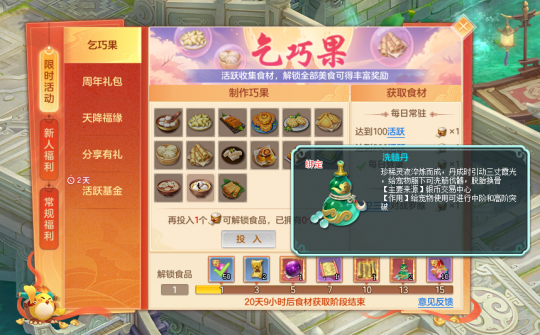 本周更新提纲 1. 七夕活动浪漫来袭 2. 官方助手竖屏功能上线 3. 七夕新服“缘来是你”开启 4. 创作激励计划 5.其它内容调整 【七夕活动浪漫来袭】 本周维护后至9月11日,开启七夕活动: 乞巧果 活动期间通过活跃可收集食材,用于解锁不同类型的巧果,根据解锁数量可领取神兽之灵、高级魔兽要诀等稀有奖励。 七夕鹊桥 维护后至9月4日,每天少侠可两人组队进行七夕鹊桥任务,完成默契考验,帮助牛郎织女成功相会。 七夕限时奇遇任务《喜鹊寻缘》支持触发,尚未完成的少侠不妨去试试运气~ 情缘系列活动 (1)心恋系列外观礼盒全新上线,同时每周限购上架玫瑰礼包,助力七夕之恋; (2)结婚及修改夫妻称谓限时半价优惠,具体可前往长安城红娘处查看; (3)活动期间,发放世界红包与帮派红包可享受8折优惠; (4)外观商城限时出售特殊坐骑“月夜幽狐”。 【官方助手竖屏功能上线】 《幻唐志官方助手》上线竖屏功能,可在游戏界面右下角系统-基础设置处进行横、竖屏切换。 【七夕新服“缘来是你”开启】 七夕新服“缘来是你”明日开启,现已开启角色预创建,开服快人一步!不仅有战斗中双形态切换的萌宠逍遥小吉,还有新服专属组队情缘活动等你来体验!寻良缘,谋幸福!希望少侠们可以在七夕新服中邂逅浪漫爱情~ 【其它内容调整】 法宝调整 (1)火风铃、破宝笛等主动法宝调整为战斗首回合可用; (2)玄机宝伞、百兽御鼓的进场能量提高,且使用后对己方本回合中途出战的单位也生效; (3)支持技能快捷栏放置主动法宝。 帮派竞赛 (1)新增进场宝箱奖励,同时帮贡进度宝箱调整为3个; (2)提高了玩家对战获得帮贡的下限; 队长获得功勋时享20%额外加成。 过关斩将 (1)降低了法宝金钱娃娃解锁自动带队所需的等级; (2)队长进入藏宝洞时会额外刷出2个宝箱。 其它调整 (1)维护后至9月4日,通过青鸟童子的挑战获得伙伴线索,可在女儿国发现特殊小伙伴;同时开放限时鱼类星河情缘鱼,可在渔夫处打听线索钓得; (2)在服务器等级≥130级的服务器创建新角色时,达到一定等级可参与限时宠物培养活动,免费领取宠物,消耗金币提升宠物各项能力; (3)截至9月11日,维护前服务器等级≥85级且人物等级≥90级可参与短信招募活动,招募成功和组队日常均可获得奖励,详情可前往游戏内了解; (4)灵觉之路赤金瓶有效期调整为60天,已购买的少侠维护后赤金瓶有效期将延长; (5)延长了回归时可触发法宝福利的截止时间,回归期间的回溯奖励次数将根据流失天数发生变化; (6)进行组队匹配时,会随机申请当前目标列表中符合条件的队伍加入。 *以上是慕子白带来的最新资讯* *最终效果可能会有所调整* |