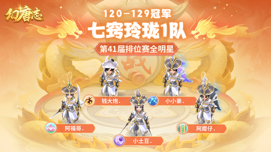 《幻唐志》第41届排位赛全明星各个分组的赛事已经圆满落下帷幕,首先让我们恭喜“七窍玲珑1队”一举摘下本届120-129级分组的桂冠!