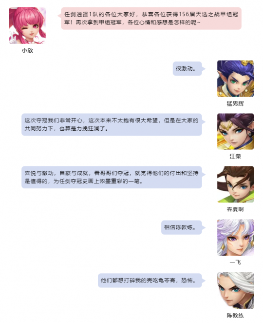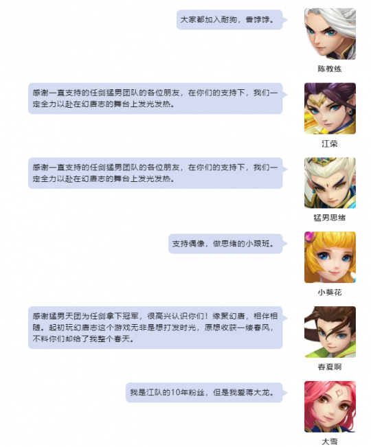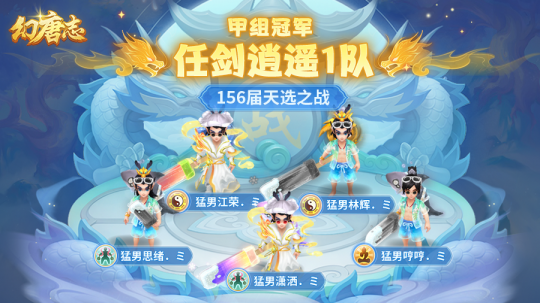《幻唐志》本届天选之战各个分组的赛事已经圆满落下帷幕,首先让我们恭喜“任剑逍遥1队”一举摘下本届天选之战甲组的桂冠!相信猛男天团,期待后面的多人轮换比赛! 第156届天选之战甲组冠军 任剑逍遥1队 本次采访的团队成员有:剑意五庄-猛男辉 乾坤五庄-江荣 天威天宫-猛男思绪 悬壶无量-猛男哼哼 风雷天宫-猛男潇洒 除此之外还有: 一飞 山海神秘人 春夏啊 表弟 大雪 陈教练 小葵花 离人书 最后小欣还为大家带来了冠军队伍的大合影大家一起来看看吧~ |