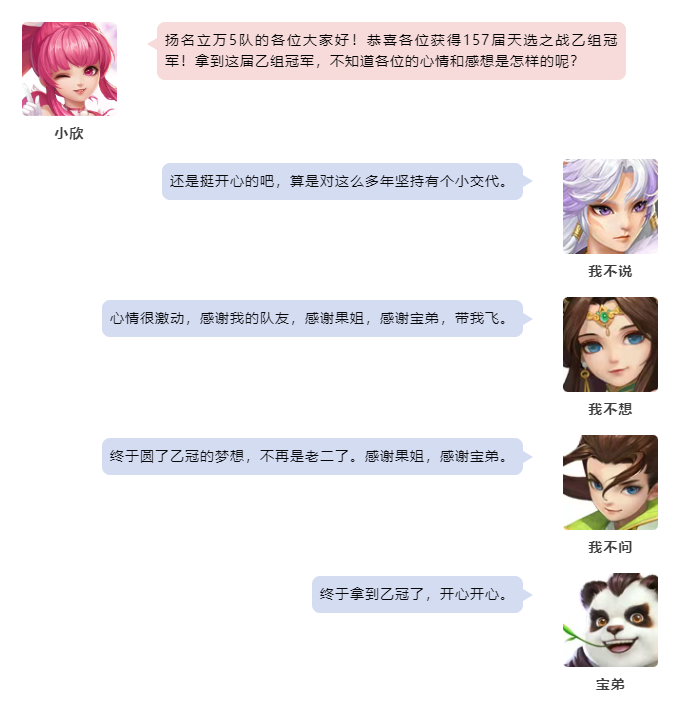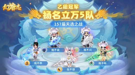 幻唐志本届天选之战各个分组的赛事已经圆满落下帷幕,首先让我们恭喜“扬名立万5队”一举摘下天选之战乙组的桂冠!一起来看看冠军采访内容。