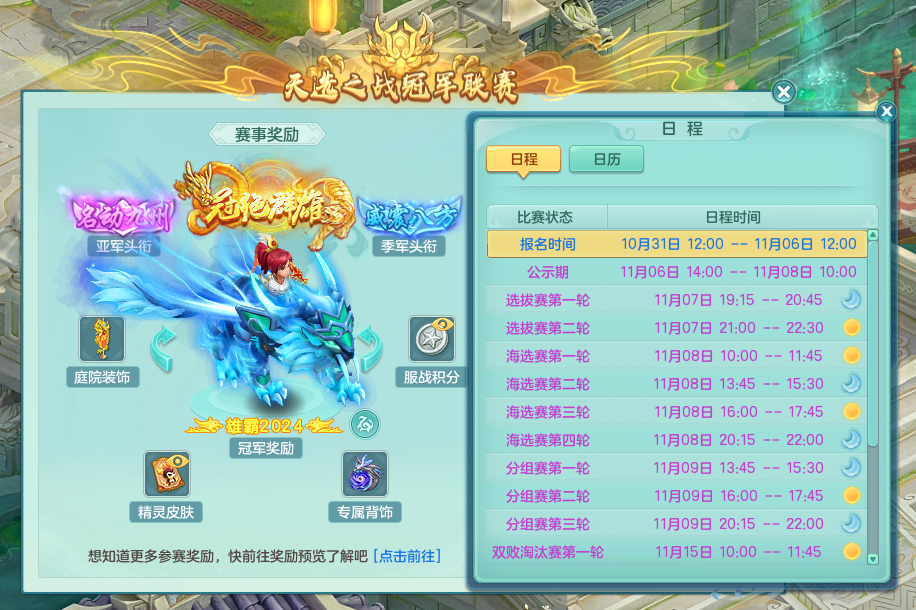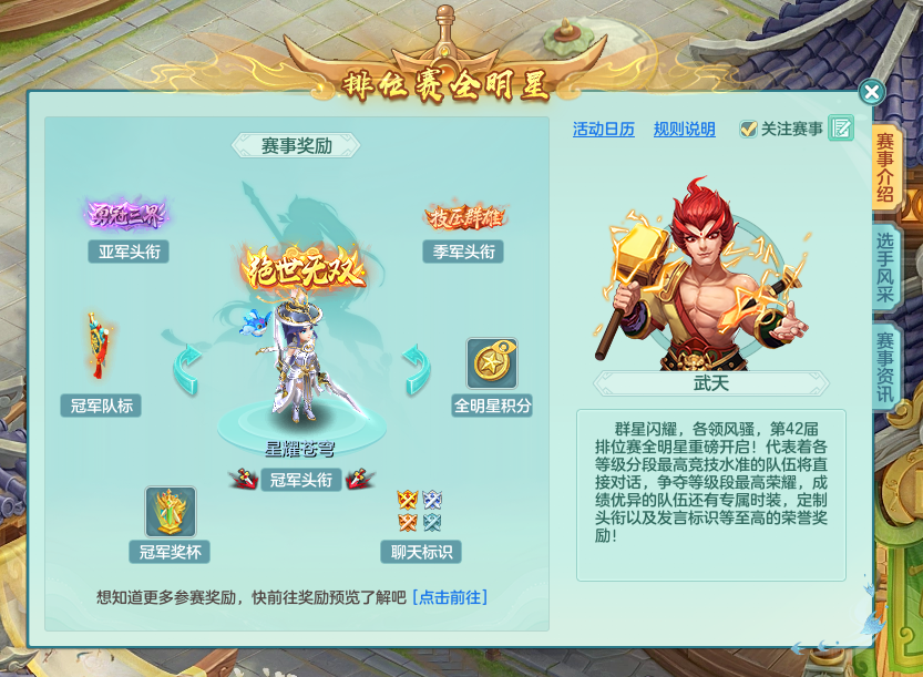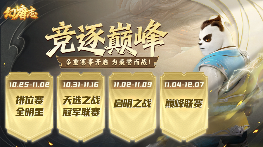 幻唐志新一轮赛事来袭,目前排位赛全明星火热报名中,天选之战冠军联赛、启明之战以及巅峰联赛也将陆续开启! 第42届排位赛全明星 第42届排位赛全明星已于10月25日开启报名,报名时间将于10月29日12:00截止,还未报名的少侠千万不要错过! 值得一提的是,本届全明星开始将采用全新的策略机制,在入围名单公布后,队长可额外邀请4名玩家替补组成9人队伍开启征战。但需注意的是,同一战队最多允许1个门派不超过2名成员,其余门派各限1名成员。同时,总决赛还将新增门派禁选机制,在比赛开始前可禁用对手2个门派,并选择复活己方1个被禁用的门派。 预选赛和淘汰赛将于本周正式打响,届时诸位少侠可前往长安城武天处或点击游戏左上角“全明星”按钮观看赛事,并为支持的战队加油打气!在全新的机制以及全新的战术下,冠军最终花落谁家?让我们拭目以待! 2025天选之战冠军联赛 2025年天选之战冠军联赛将于10月31日12:00开启报名,本届赛事将允许各战队报名后,再邀请4名替补队员组成9人队伍轮换出战。需注意的是报名队伍中只能选择一个门派拥有2名成员,其余门派均只能有1名成员。同时总决赛还将与排位赛全明星一样新增门派禁选机制。让各个战队有更多的门派选择,更丰富的战术配合!本届赛事将为广大少侠们带来怎样的赛事盛宴?让我们一同期待吧! 本届赛事还将新增坐骑帝霄以及180天帝霄专属染色主题“帝霄·赤影”等重磅奖励,坐骑将于下届投票结束时回收。除此之外,还有冠绝群雄头衔、通天吼坐骑、冠军联赛时装等奖励等你来赢! 启明之战与巅峰联赛轮番上阵 第四届启明之战将于11月2日在“周年·锦绣”、“周年·璀璨”、“烈火流金”、“挥剑决云”服务器开启。参与活动角逐冠军,还能获得包括专属外观、头衔等道具在内的丰厚奖励。 此外,面向全民的第三届巅峰联赛也将于11月4日开启第一轮海选赛,从海选赛到淘汰赛,每个阶段都有对应的专属奖励。不仅有元灵碎片和装备之灵等实用道具助力少侠快速提升战力,获得联赛冠军更可获取顶级大奖——典藏时装“少年游”,彰显少侠的实力与荣耀! 多个赛事来袭排位赛全明星、天选之战冠军联赛启明之战以及巅峰联赛轮番开战精彩赛事不容错过。 |