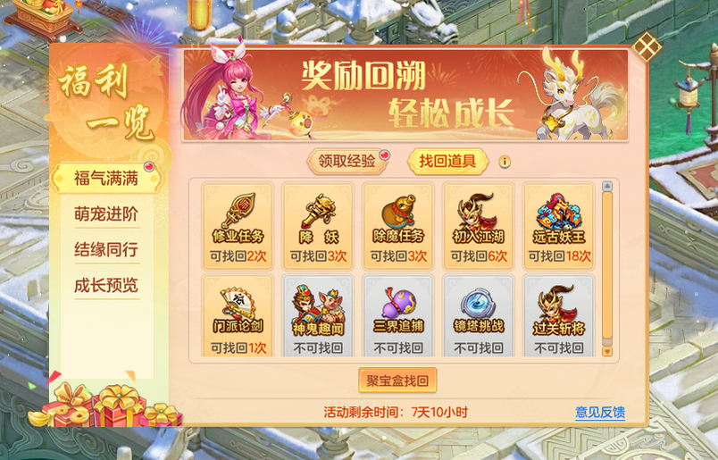 幻唐志春节大服“马到成功”将于2月14日正式开启,目前已开启角色预创建,入驻享日常活动经验一键找回,前期剧情直接跳,每日宝图免费送,海量减负内容助力少侠前期开荒轻松玩! 日常经验无损找回 错过奖励轻松补 少侠入驻新服,无需担心错过降妖、除魔、副本以及晚间限时活动等奖励,只需登录即可一键找回最多9天的全部经验、信誉、现金奖励。使用聚宝盒还能找回道具奖励,不仅消耗的耐久更低,道具奖励也可直接找回,助力轻松找回错失奖励! 补签无门槛,登录直接领!错过签到好礼往期奖励的少侠无需满足活跃条件,登录即可补签领取错过的奖励,全新萌宠“小福鲤”、三级宠物护符、山水玄机图等好礼等你领取! 新服剧情可跳过 宝图奖励直接领 前期剧情一键跳过!少侠可跳过同一通行证下的其他角色已完成的剧情,最高支持40级的剧情,不花时间直接领奖励,提高游玩效率。此外,新服在帮派篝火派对后会固定刷新强盗首领,少侠可随心挑战! 入驻新服领取新萌宠“小福鲤”后,可在萌宠界面直接领取宝藏手册,使用后会获得10张藏宝图,助力少侠日常减负,游玩更轻松! 签到领奖励 概率得神兽? 春节大服新春签到活动2月14日开启!假期登录即可领取高级魔兽要诀、三级护符重置丹、山水玄机图等丰富奖励,每次签到都有机会获得随机神兽。双端互通随时领,少侠可使用官方助手轻松领取奖励! |