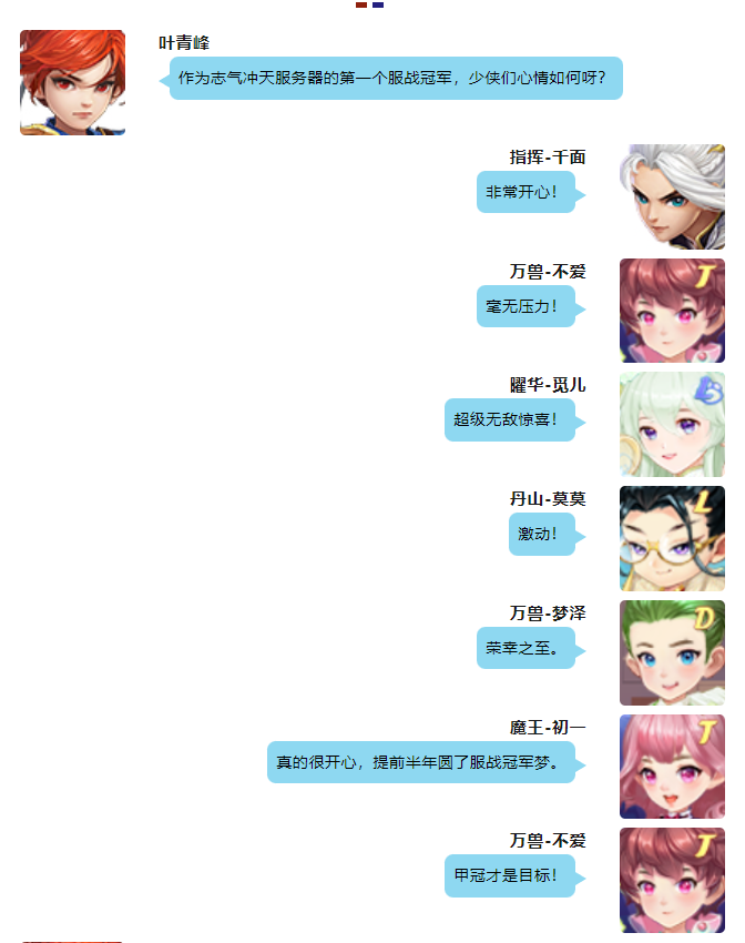 | 在《幻唐志:逍遥外传》手游第98届天选之战当中,志气冲天5队披荆斩棘,最后在与今年勇5队的比赛中赢得胜利,最终夺得本届天选之战乙组冠军,恭喜他们! 【战队简介】 战队名称:志气冲天5队 战队荣誉:第98届天选之战乙组冠军 战队构成:一封、一奶、两物理、一法 觅儿(曜华城)、莫莫(小丹山)、不爱(万兽岭)、梦泽(万兽岭)、初一(魔王山) 编辑:ssc |