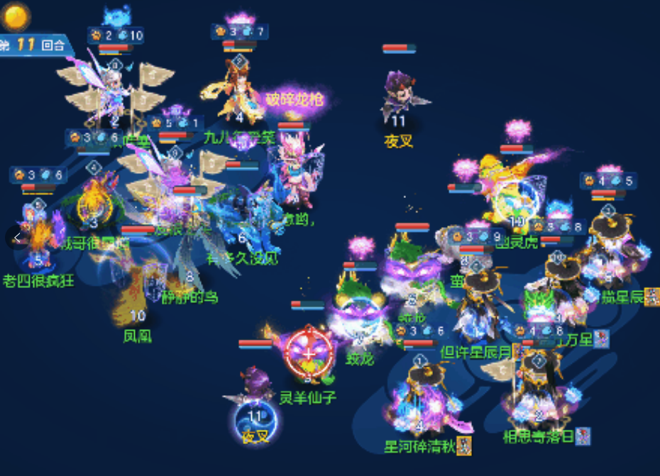 《幻唐志》手游玉龙将的特殊技能伤害与被攻击单位的攻击力息息相关,在对局中选择合适的攻击目标才能使伤害最大化。 玉龙将对局表现 ① 中期出场清卡速 克制加成伤害拉满 第14回合,对战方千速芙蓉仙子回合初复活辅助,观战方刚登场的感知玉龙将攻击千速芙蓉仙子,没有暴击的情况下打出高达2000的伤害。 第15回合,对战方芙蓉仙子再次用药,观战方玉龙将再次打出高额伤害并将千速芙蓉仙子清理出场。 千速宠在封辅倒地或队伍血线不佳时,对团队增益较大。不少千速宠为了达到较高的速度且兼顾生存能力会选择飞行和隐身兽诀,如此一来,感知+精准的伤害加成则十分可观。 另一场对局中,观战方接连上场三只抵御卡速宠。 对局中也有不少卡速宠会利用抵御兽诀提升生存能力,攻坚玉龙将也因此成为了热门的培养方案。除此之外,不少玉龙将还会携带驭兽技能伺机和觉醒技能清剿,对卡速宠的伤害有进一步的加成。 ② 如何提升生存能力? 第11回合,观战方玉龙将预判防御,在敌方集火下成功存活。 第12回合,观战方千速宠及时用药将玉龙将回复至健康血量,再次存活。 第13回合,观战方千速宠再次用药,同时普陀使用子午心灯,玉龙将再次存活并打出高额伤害。 玉龙将由于自身技能的特殊性很容易遭到敌方的集火,在对局中预判防御、子午心灯并及时回血将大大提升玉龙将生存能力。 ③ 如何处理敌方玉龙将? 第11回合,观战方冥月使用缠斗,成功吸引对战方玉龙将火力。 第12回合,观战方罗刹成功挑衅玉龙将,吸引其火力。 第14回合,观战方罗刹再次成功挑衅玉龙将,吸引其火力。 己方多卡速宠的情况下,集火击杀敌方玉龙将似乎是一个不会错的选择,但如果敌方成功预判则有可能功亏一篑。新门派冥月天通过挑衅将玉龙将的伤害转移,也能成功化解了玉龙将对己方卡速宠的威胁。 编辑:ssc