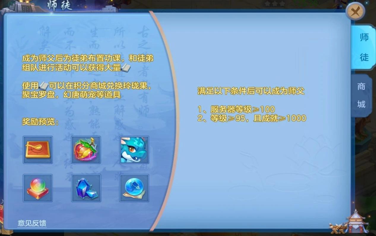 《幻唐志》手游近期,部分维护中的系统已经完成调整并重新开放了!为大家做了一文汇总,首先来看一下关于修罗降世副本最新消息吧~ 修罗降世副本优化 妖王只保留两档难度,修罗王只保留三档难度,整体难度下降,基础奖励提高。下面一起来看看最近重新开放的系统吧! 战队系统重新开放 70级以上服务器重新开放战队创建和招募功能,详情可前往临仙镇-战队管理人处进行了解。 还记得以前一起组战队的小伙伴吗?现在是时候重组战队,遨游三界了~ 师徒系统重新开放 1)服务器等级≥100级的服务器将重新开放师徒系统,并调整相关规则; 2)师徒积分商城新增飞雷将转生丹、萌宠小海龙、幻彩石、炫彩晶等可兑换道具。 新人不用担心没人带领了,师父也可以兑换更多的奖励~ 子女共享系统调整 子女共享系统调整为子女游历活动: 1)【一见钟情】以及后续开启的服务器将开放子女游历活动; 2)满足一定条件的角色,消耗子女游历帖以及子女培育道具×10后,能将子女送至同账号同服另一个角色处游历,取回游历子女前可永久被此角色携带和参战; 3)服务器等级≤70级时,子女游历帖会通过英豪令商城限时出售,满足一定活跃条件即可购买,购买后道具有60天有效期。 同一服务器不同角色之间可以共享子女了,子女养成更加方便~ 以上重新开放的内容,少侠们有什么想法,欢迎在评论区中留言讨论!更多精彩消息,还请少侠们持续关注公众号资讯~ 编辑:ssc