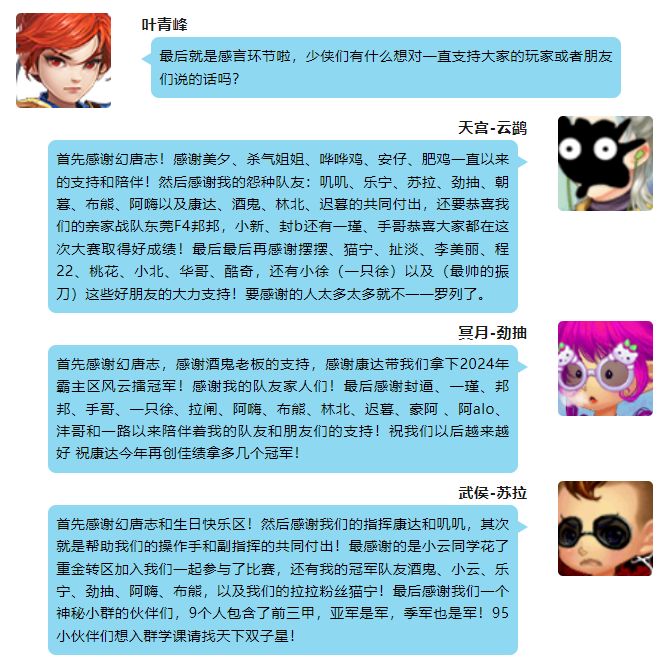 《幻唐志》手游2024年度风云巅峰赛当中,生日快乐2队披荆斩棘,最后在与天下无双13队的比赛中赢得胜利,最终夺得本年度巅峰赛霸主区冠军,恭喜他们! 【战队简介】 战队名称:生日快乐2队 战队荣誉:2024年度风云巅峰赛霸主区冠军 战队构成:一封、一奶、两物理、一法朝暮(七星方寸)、酒鬼(无量)、云鹢(凌霄天宫)、劲抽(冥月天)、苏拉(武侯府) 接下来我们一起来认识一下这支冠军队伍吧! 编辑:ssc