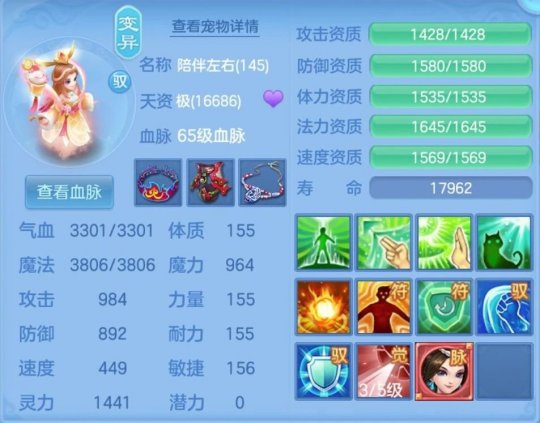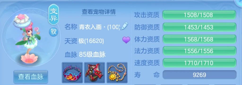 心有灵夕 每个少侠都有一颗少女心,粉色系! 粉粉嫩嫩的,少侠的染色太好看了吧!无忧可不只是染色好看!少侠的宠物也很强呢!紫心满速资的芙蓉仙子,不知道的打造方向如何呢? 坏的有风度 都说低等级宝宝没用,这宝宝是我们开区一起固定队洗的,怀念过去。顺便请教一下是65的专属血脉强还是换个125的血脉强? 法资很优秀的罗刹女,想必陪伴少侠度过了很多游戏时光。关于血脉是否有调整的必要,评论区的少侠可以支支招吗? 编辑:ssc