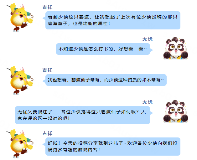 《幻唐志:逍遥外传》牛图分享,“满资质”碧波仙子长什么样?“纯手洗”两只红心宠物,来沾沾好运! 一夜、暴走 “玩了这么多年幻唐志,一周出两只红五技能,太爽了,纯手洗,没用通灵。虽然不够极品,但是很开心了。” 阿奴吖 真图鉴碧波,五技能常见,满资质可不常见。 编辑:ssc