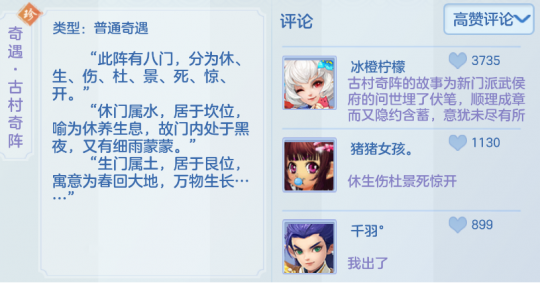 《幻唐志:逍遥外传》奇遇剧情让你记忆深刻的是哪些呢?幻唐志逍遥外传奇遇盘点,快来看看这些隐藏奇遇你是否还记得? 天圆地方 季浑和汪渊为了浑天说与地圆说之争从儿时争辩到成年,二人渴望追求真知,却遭到老师徐夫子的阻拦(只因大海茫茫,死生难测)少侠见证了他们那新奇的理论,并帮助他们去追寻真知…… 季浑和汪渊他们俩的故事还挺让吉祥我触动的……为了寻求真知,而不顾艰难,当时做这个奇遇,我都对他们俩感到佩服呢! 古村奇阵 为了寻找张猎户的孩子小石头而进入巨石林,误触机关进入了八阵图,最终在李淳风道长的指引下脱险…… 奇门八卦阵,太吓人了……武侯府的绝妙阵法,说实在的,我还想再体验一下 三生有幸 前世之约,今生来复。李源道长和圆泽高僧的前世之约却遭人误解,少侠不辞辛劳,为他们解释清楚…… 这位少侠写的故事真让人感动呀,要是咱们定个来生之约,你还能认识我吗? 天蓬小帅 高老庄的吃食不断被盗,原来是“天膨元帅”在三界收的徒弟猪小能所为,但他师父的身份却在一次遭遇中被少侠识破…… 这个太搞笑了,天膨元帅,哈哈哈哈……不过可怜的小能被骗了。不愧是咱们幻唐志的玩家,太有想象力了,想的故事都这么有趣~ 编辑:ssc