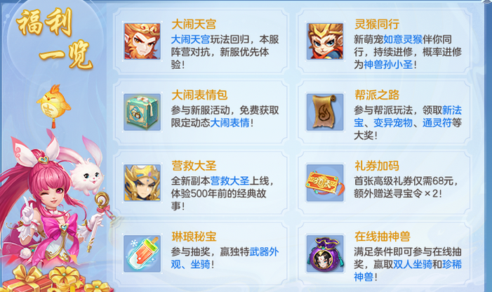 幻唐志年度全新内容:战斗调整&转门派半价,大闹天宫回归。接下来给大家梳理一下本周更新维护的重点: 本周更新提纲 1. 凌霄斗法系列活动开启 2. 新一轮战斗调整以及半价转门派 3.全新外观及限时外观返场 4. 大闹天宫主题服“凌霄斗法”开启 5. 其它调整 【凌霄斗法系列活动开启】 凌霄斗法,重演传奇!本周五更新维护后将开启以下活动: 大圣赠礼 活动开启期间,每日活跃或完成赠礼任务可获得赠礼点数。累计获得赠礼点数,可领取洗髓丹、免费法宝转换次数和成就标签·自在猴等奖励。 大闹天宫 11月24日将在“凌霄斗法”服务器限服开启“帮战·大闹天宫”玩法,同时“帮战·图腾争夺”将暂停。12月1日将在全服开启“帮战·大闹天宫”玩法。更多玩法介绍,少侠可以点击图片查看! 凌霄之乱 活动期间每天9:00-23:00每个整点,在野外某地平息天界和妖界的战乱冲突,完成活动概率获得神兽之灵、虹彩等奖励,组队奖励更丰厚! 登录有礼 活动开放期间每周一开放新阶段,阶段开放后登录游戏即可领取山水玄机图、糯米凉糕等丰富奖励;解锁进阶更可领取聚宝盒、鸿运宝箱等珍稀奖励。 凌霄斗法礼包 限时上架凌霄斗法礼包,内含灵能果、如意礼袋(通灵符、幻彩花和专精龙纹包×3三选一)、超级幻灵水等珍稀道具,少侠可前往奖励中心查看。 分享有礼 维护后至12月25日,邀请好友一起参与网页活动“凌霄夺宝”,累计分享并参与即可领取好礼。 此外,还有短信招募活动、拍卖中心限时加拍等活动将一同开启! 【新一轮战斗调整以及半价转门派】 新增可“击退”敌方宠物的法宝,并对门派星穹等内容进行了多样调整,详情可点击下方图片跳转查看。 维护后至12月19日8时将开启半价转门派、重置属性和凤血龙眼折扣活动。 【全新外观及限时外观返场】 全新外观 上新宠物皮肤“镜花灵·踏浪拾星”、“神石护卫·怒涛守护”、“建木仙·逐浪欢扬”。11月21日至11月23日,55级以上服务器开启限时加拍。 外观返场 维护后至12月18日,陆地双人坐骑“镇山河”、陆地单人坐骑“雷影豹”限时上架外观商城。 【大闹天宫主题服】 大闹天宫主题服“凌霄斗法”将于11月21日10点正式开启。入驻新服享签到领萌宠、萌宠同行等萌宠免费培养福利,萌宠养成无忧!还有大闹天宫玩法回归、帮派之路等主题系列活动等待少侠前来解锁! 凌霄斗法及后续新服,特惠商城限时新增神兽内丹出售,有需要的少侠可以前往了解。 【其它内容调整】 好友推荐调整 (1)擎天支持破境技能,可使用80个神兽之灵或破境内丹随机增加1个破境技能; (2)擎天特殊技能圣道之剑调整:技能造成的伤害结果调整为120%,新增进入战斗时可获得攻击力×40%的护盾; (3)好友推荐兑换商店新增可使用邀请积分或互助积分兑换神兽之灵。 回归奖励加码 (1)维护后满足一定条件的玩家,回归签到将升级为全新回归之路福利活动,找回更多错过活动奖励; (2)调整可获得的回归宠物并新增了暗月龙姬、九幽魔将、飞羽。 其它调整 (1)支持2980邮箱账号通过手机验证登录的方式快速注册、登录游戏。 (2)新增突破天赋强化标识。宠物拥有突破的强化、提升、精通等天赋,宠物界面的对应技能会显示突破天赋强化标识。 *以上是慕子白带来的最新资讯* *最终效果可能会有所调整* |