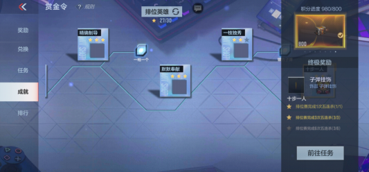 其实游戏里就有很多免费领取的赏金令积分卡,首先就是赏金令的成就之路,本赛季赏金令的成就之路任务相对比较简单,只要我们完成一定的对局就可以领取,如何快速领取赏金令成就之路的奖励,其实一直玩排位赛团队战就可以,因为有的任务是固定的对局数,只有排位赛的团队比较快。