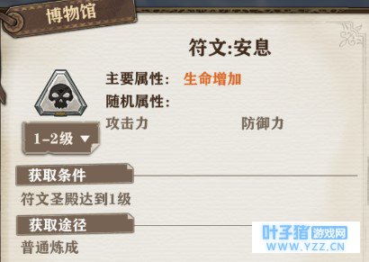 我们可以看到该组合在拥有以上3个符文达到一定的等级之后可以分别获得 需要符文等级3级:生命提升6% 需要符文等级4级:伤害减免35% 需要符文等级5级:攻击力提升6% 需要符文等级6级:死亡后,恢复全体队友15%生命。 需要符文等级7级:伤害加深35% 需要符文等级9级:狙击由觉醒印记带来的额外伤害提升15% 其中各组合符文属性如下: