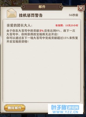 挂机惩罚增加 无论在什么游戏中,挂机的队友都是最让人讨厌的存在。不作为却又分奖励的行为,不仅让其他努力付出的队友不爽,而且还严重影响队伍的打宝效率与游戏体验。在改进后的新版大苍穹中,终末结算伤害贡献不足的玩家会被系统判定为挂机而受到惩罚,惩罚就是在下次大苍穹中所获得的所有宝箱将无法被开启,只能通过在下场大苍穹中伤害贡献度达标来解除惩罚。