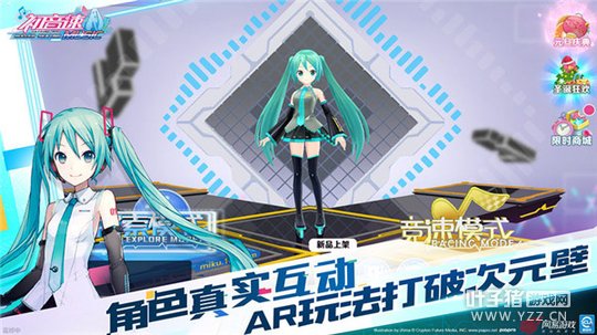 角色真实互动 AR玩法打破次元壁 众所周知,增强现实技术对于游戏体验来说有着极大的提升,所以《初音速》也在游戏中加入了AR玩法。玩家只需要调用游戏中的AR系统,将手机镜头对着一块现实区域,初音未来就会出现在这个区域里,对于早已习惯在全息影像中出现的虚拟偶像,这样的效果必然会让粉丝感到特别亲切。而且在玩家眼前突破次元壁的初音未来还会与大家亲密互动,雀跃,跳舞甚至打招呼。而且这些珍贵的镜头,玩家都可以拍摄下来与其他小伙伴们一起分享哦!在后续的更新中,玩家还可以体验到AR装扮家园,探险功能 AR 化,养成模式AR化等全新玩法。