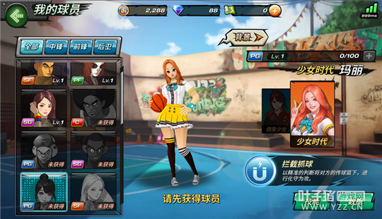 图2:灵动后卫,少女玛丽 潮人篮球手游PG技能搭配小技巧: 一、主动技能——鱼跃扑球+冲抢+换手变向突破+突破上篮/抛投上篮+跳投假动作+向后运球+假上篮真传(有的话优先带上) 鱼跃扑球不用多说,是每个后卫的看家本领,一定要有。冲抢是个双刃剑,用的好可以快速的进行补位,用的不好则有可能会导致失位。左右换手突破则可丰富PG的运球能力以帮你寻求更好的得分机会。突破投篮可以帮助你在突破对手后快速出手,增加得分机会。PG作为组织后卫,其主要功能是组织队员进攻,因此得分技能只要装备一个足矣。