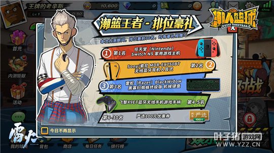 图3:迷之暴扣者,篮球国度的矛盾和冲突 内测壕礼钜献,限定永久皮肤等你拿 《潮人篮球》安卓首测将于12月14日-12月29日全天开放,累计签到,领取超级中锋斯蒂芬·杨、暴力分卫维兹,更有内测限定永久皮肤等你拿!登顶潮篮王者,即可获得任天堂Switch NS 家用游戏主机、Sony/索尼 MDR-EX750BT无线蓝牙耳机等豪华实物奖励!