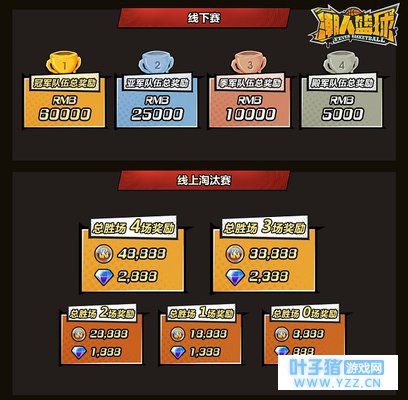 ?多重奖励,惊喜连连! 此次《潮人篮球》精英邀请赛将邀请顶尖玩家与知名主播共64支战队进行角逐,经过线上赛的激烈比拼后,最终四支战队会师广州,进行最终一战! 线下赛4支队伍共同瓜分10万奖金,争夺冠军荣耀!冠军队伍所有队员还将获得专属冠军称号和专属冠军头像框。线上淘汰赛所有参赛玩家都可以获得本次赛事专属称号和专属头像框奖励,更有巨额钻石、烈火币奖励参与就送![先说现金奖励再说虚拟奖励吧,另外奖励的图,只用晒实物奖励的,做一个图吧。下面那个看起来很简陋]