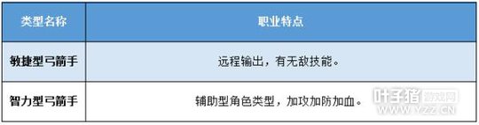 2、弓箭手职业:远程职业,使用弓为武器,高攻击高速度,可以转职成敏捷型弓箭手和智力型弓箭手。