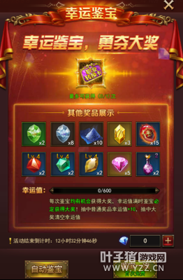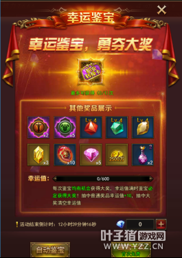 鉴宝大奖: 职业转换卡*1 普通奖品: 2倍经验药水*2,5级生命之石*1,5级攻击之石*1,5级防御之石*1,强化套装石(防具)*15,圣装石*2,玛雅宝石*3,进化宝石*2,魂尘*10,灵魂宝石*5 温馨提示:如上述内容与游戏内有出入,请以游戏内实际获得为准。 编辑:叶子猪小秘书