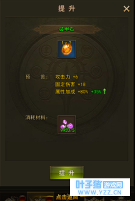 双属性宝石提升: 在镶嵌界面使用精美宝石碎片提升双属性宝石的“属性加成”属性,这条属性会对前两条属性有百分比加成,在战斗中会有效果。