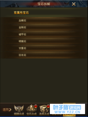 双属性宝石合成: 界面和以前的合成一样。双属性宝石可使用新增的精美宝石碎片进行合成。
