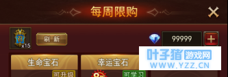 (3)每周限购任意刷 回归帐号的每周限购界面顶端增加一个道具图标和一个刷新按钮,点击刷新按钮时消耗限购刷新令一个同时重置每周限购的购买次数;刷新令可以在回归大礼或活跃有礼中获得。