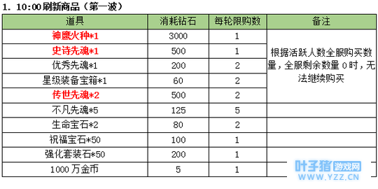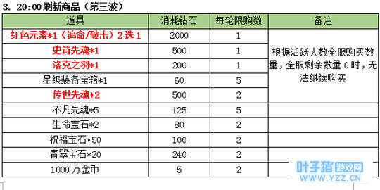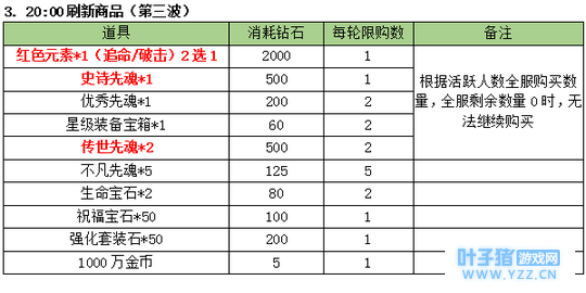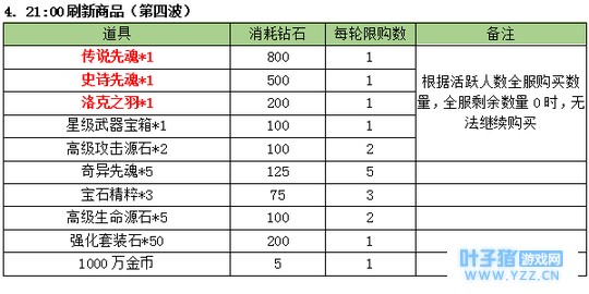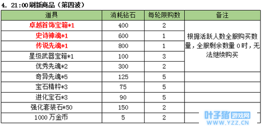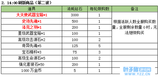 3. 商品刷新时间点 :10:00;14:00;20:00;21:00 限购商品: (世界等级1-499级(即1-1转399级))