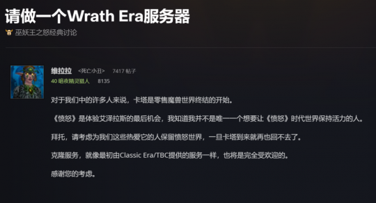 万人血书开设WLK永久服?暴雪的原汁原味 让排骨人炸了