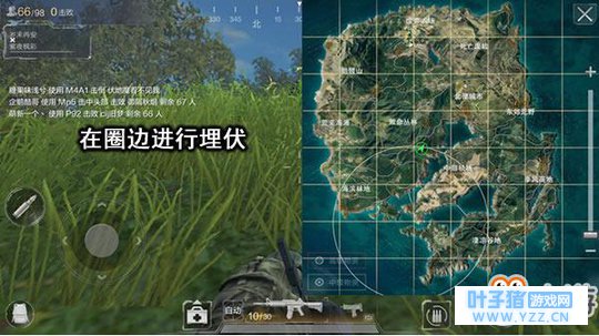 在遭遇天谴圈的情况下,如果没有载具,玩家即使成功进圈,短时间也难以到达圈内中心位置,建议玩家进圈后直接在圈的边缘位置进行埋伏,这种方法简称卡边战术。