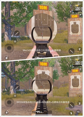 机瞄视野方面,其实两把枪都差不多,不同的是看使用者的个人瞄准习惯了。小编个人还是比较喜欢Mini14的机瞄,感觉在小屏手机上更容易锁住敌人。SKS的机瞄虽然更加开阔,但碍于后坐力较高的原因跳动两次后真的难瞄准敌人。不过不管怎么样,还是建议最好加装基础镜。 【弹道对比评测】