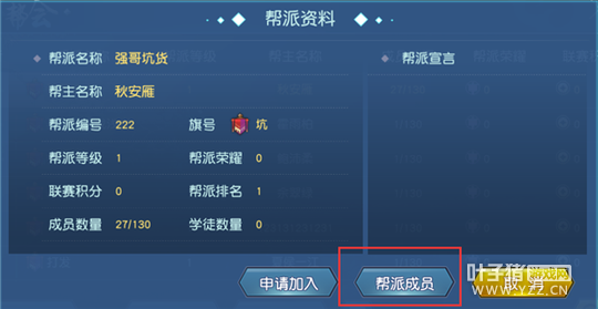 【帮派资料】 点击按钮,开启 “ 帮派资料 ”。