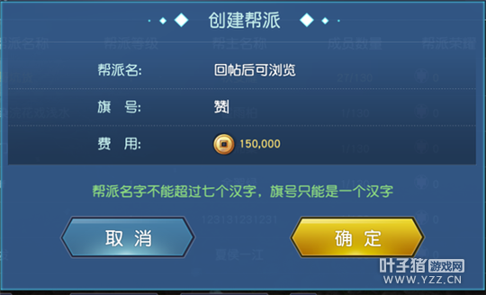 帮派宣言 :最多显示100个汉字。 帮派公告 :最多100个汉字 编辑:叶子猪小秘书