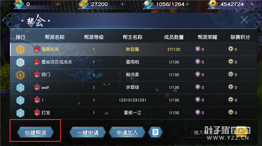 【创建帮派】 如果自己没有帮派,点击后开启创建帮派界面。