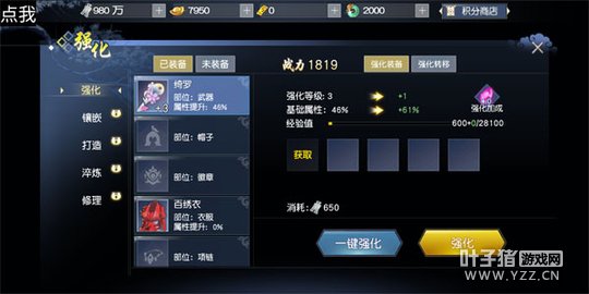 【装备系统】 作为刚进游戏的玩家在完成任务过程中肯定会遇上一些强力BOSS打不过的难题,这时候不妨打开你的背包,看看有没有高品质装备。之后去装备打造瞧瞧,把身上装备强化,有宝石就镶嵌上装备,武器属性不好就通过淬炼重铸。这些步骤都能帮你提升属性,让你在副本中轻松过关。