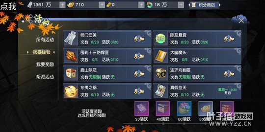 【升级指南】 刚进游戏的新人肯定会把提升等级放在第一位,只有等级上去了才能摆脱萌新的标志,才能在江湖中站稳脚跟。游戏前期玩家只要一直跟着主线走就行,不仅提供的经验多还能帮你了解游戏的世界观。之后会逐步开放其他获取经验途径,在主线做完以后可以尝试接取日常任务,比如师门任务就能提供大量经验。另外玩家多注意活动系统,在“我要经验”区域挑选自己喜欢的活动任务,完成这些任务足够你升好几级。
