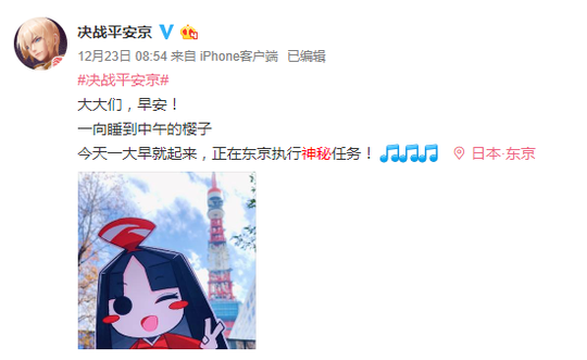 一时间,各种猜测不绝于耳,这张神秘猜想图也成为了阴阳师大人们讨论的热点。在热烈讨论的同时,众多大人们都联想到了前几日在《决战!平安京》的官方微博,樱子发布的一条动态,告诉大人们她将前往日本东京执行一项神秘任务。微博上的音乐符号是否预示着任务与平安京的配乐有关?而这又与高梨康治大师有着什么联系呢?不禁让人浮想联翩。
