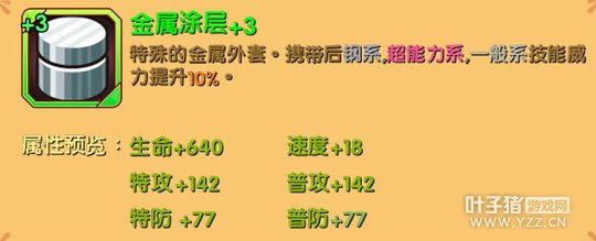 推荐宠物携带道具: 金属涂层、神秘的水滴 金属涂层增加一般系以及钢系技能威力,神秘的水滴增加虫系技能威力,都可以选择。