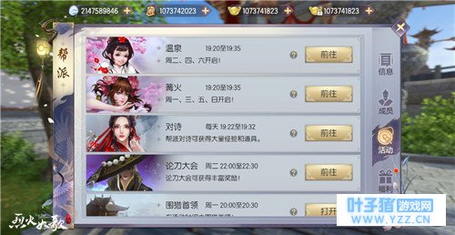 【泡温泉聚篝火,吟诗赏景的烈火江湖】 泡泡温泉,喝喝茶,同样是《烈火如歌》手游的帮派中一项有趣的玩法。每周二、四、六,温泉活动将定时开启,玩家们届时便可相邀前往帮派驻地泡温泉,享受放松身心的愉悦时光,顺便获得丰厚的活动奖励。